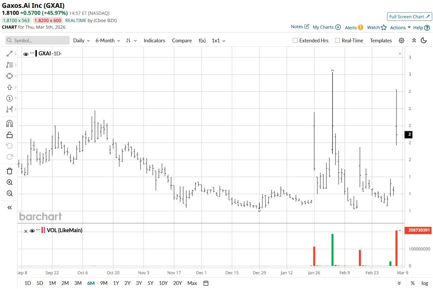 Despite an explosive rally on Thursday, GXAI stock remains down more than 5% versus its year-to-date high.