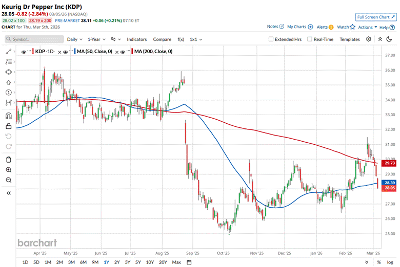 On Feb. 24, KDP shares rose 4.2% following the release of its Q4 2025 earnings. The company’s revenue rose 10.5% year-over-year to $4.4 billion and surpassed the Street’s estimates. Moreover, its adjusted EPS for the period amounted to $0.60, also coming in on top of Wall Street estimates.