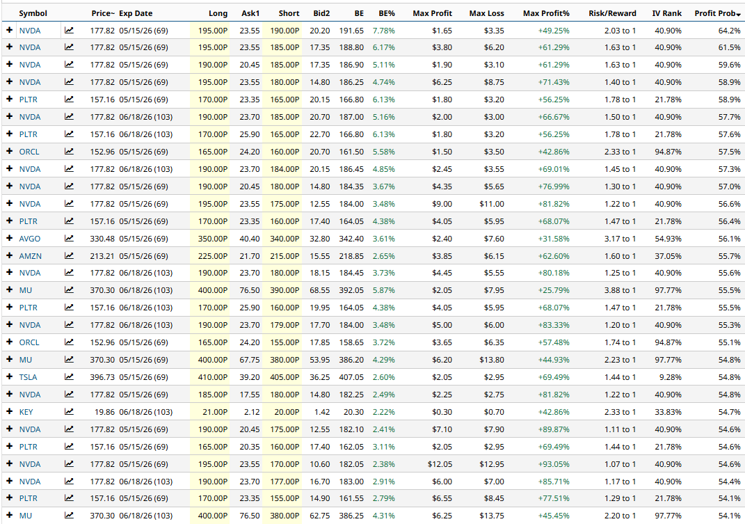 Let’s take a look at Barchart’s Bear Put Spread Screener for today: