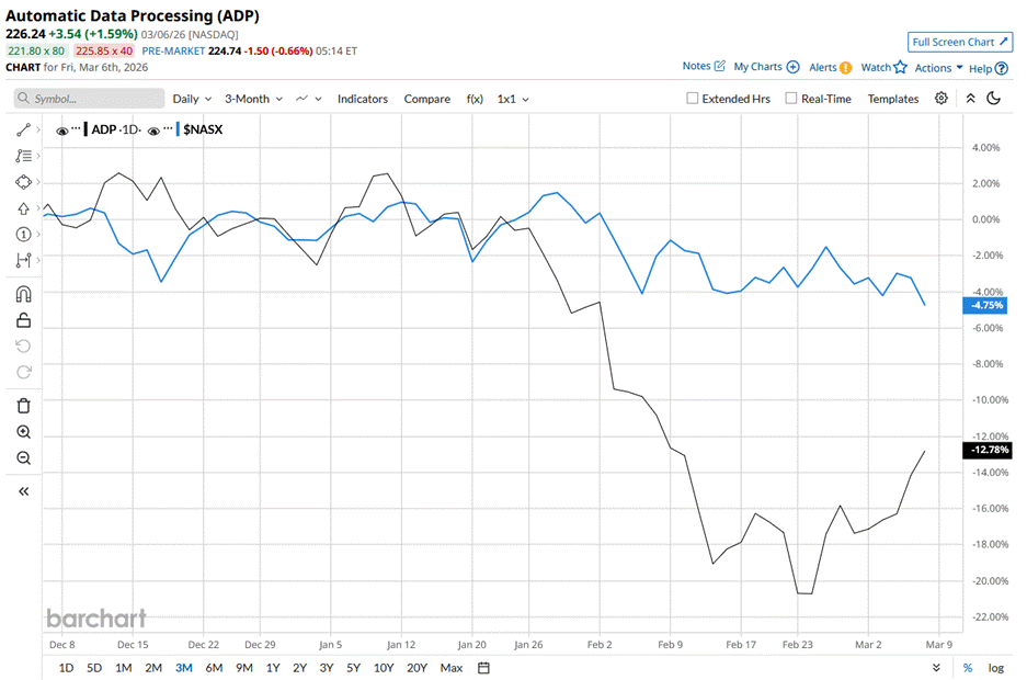 ADP stock reached its 52-week high of $329.93 on June 06, 2025, and has slipped 31.4% from that peak. The stock has declined 13.5% over the past three months, notably underperforming the Nasdaq Composite ($NASX), which declined 5.1% during the same time frame.
