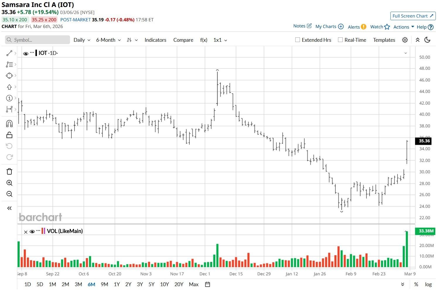 Samsara (IOT) shares closed nearly 20% higher on March 6 after the cloud software company’s solid Q4 and impressive future guidance signaled artificial intelligence (AI) disruption fears are indeed overblown.