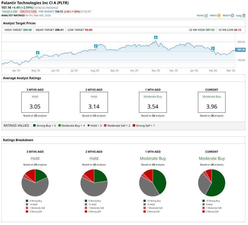 Analysts maintain a “Moderate Buy” consensus rating on PLTR stock.