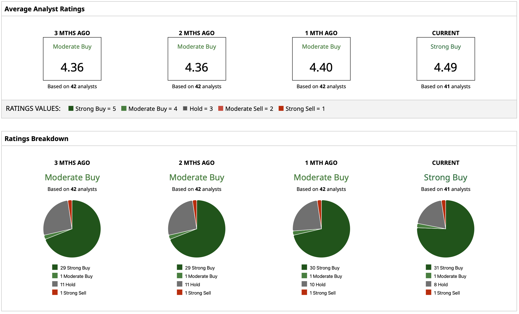 Wall Street analysts are quite positive about the growth prospects for the company in the long term with a “Strong Buy” rating consensus. ORCL stock has a mean price target of $280.18, compared to the current price of around $149. That indicates upside potential of about 88%, implying that the growth story for the company’s cloud infrastructure is still in the early stages. Analysts are quite uncertain about the growth prospects for the company’s AI infrastructure business, as the price targets vary from a low of $155 to a high of $400.