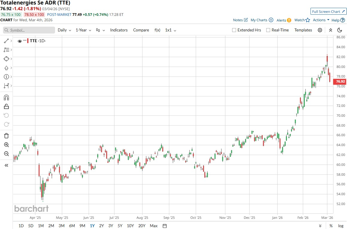 TTE changes hands around $76.92 with a 52‑week increase of roughly 28.48% and a YTD gain of about 17.58%.
