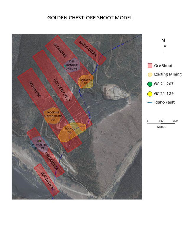 Drill hole GC 21-189 is approximately 39 m down dip from the previously reported intercepts in GC 21-184 where 20.1 g/t gold was intercepted in the upper vein and 3.8 g/t gold intercepted in the lower vein. This latest drill hole information continues to add ore blocks to our resource deposit model and is important in the evaluation of a potential development ramp plan from existing Skookum underground mine workings to the Paymaster area.