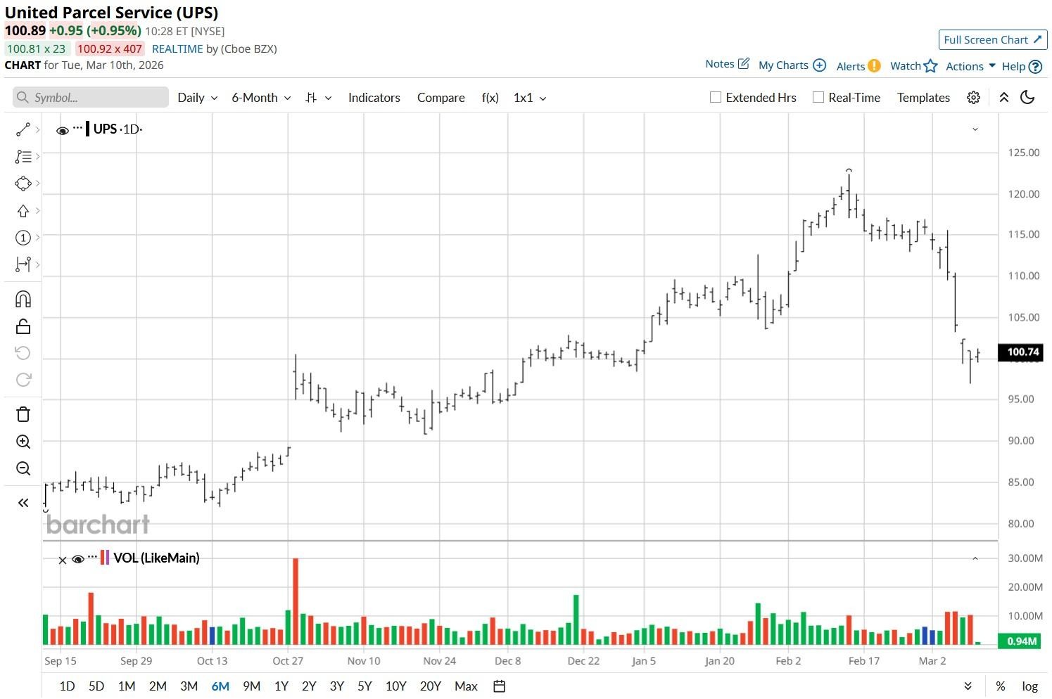 United Parcel Service (UPS) shares have tanked in recent sessions as the Iran war pushed oil prices to a high of roughly $120, directly impacting the shipping firm’s substantial fuel costs for both ground and air operations. Following this decline, UPS has its relative strength index (14-day) hovering in the high 20s, indicating oversold conditions that often spark buying momentum in the near term.