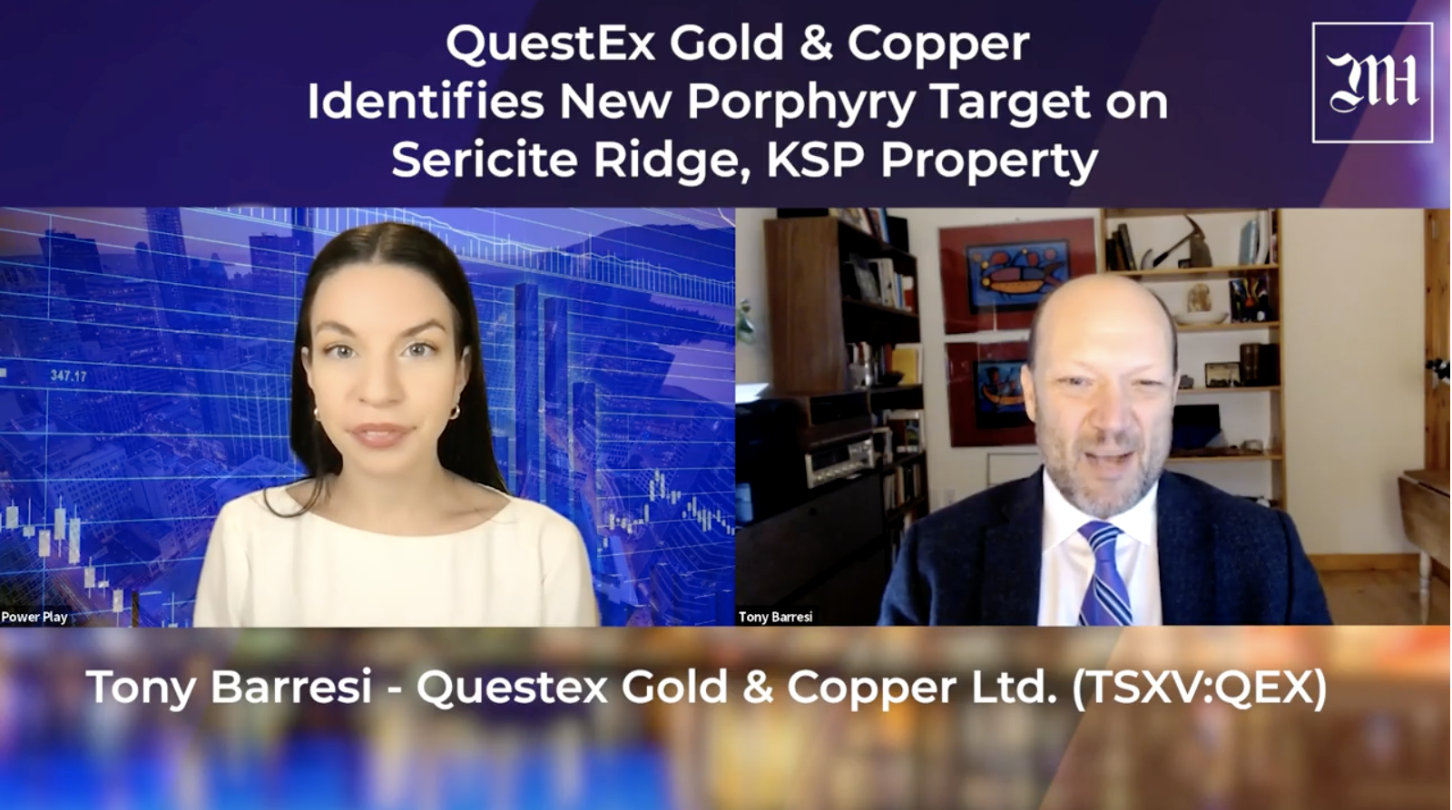 QuestEx Gold & Copper (QEX) has announced the results of a 24-line-kilometre induced polarization survey conducted on QuestEx's KSP property located in B.C. The IP survey identified a new top-tier porphyry copper-gold exploration target by testing beneath the extensive 8 by 3.5 km Sericite Ridge alteration zone, where it identified an approximately 1,500 by 1,000-metre area with coincident high chargeability and high resistivity, a geophysical signature consistent with porphyry copper-gold systems. Tony Barresi, QuestEx's President sat down with Caroline Egan to discuss the survey results.