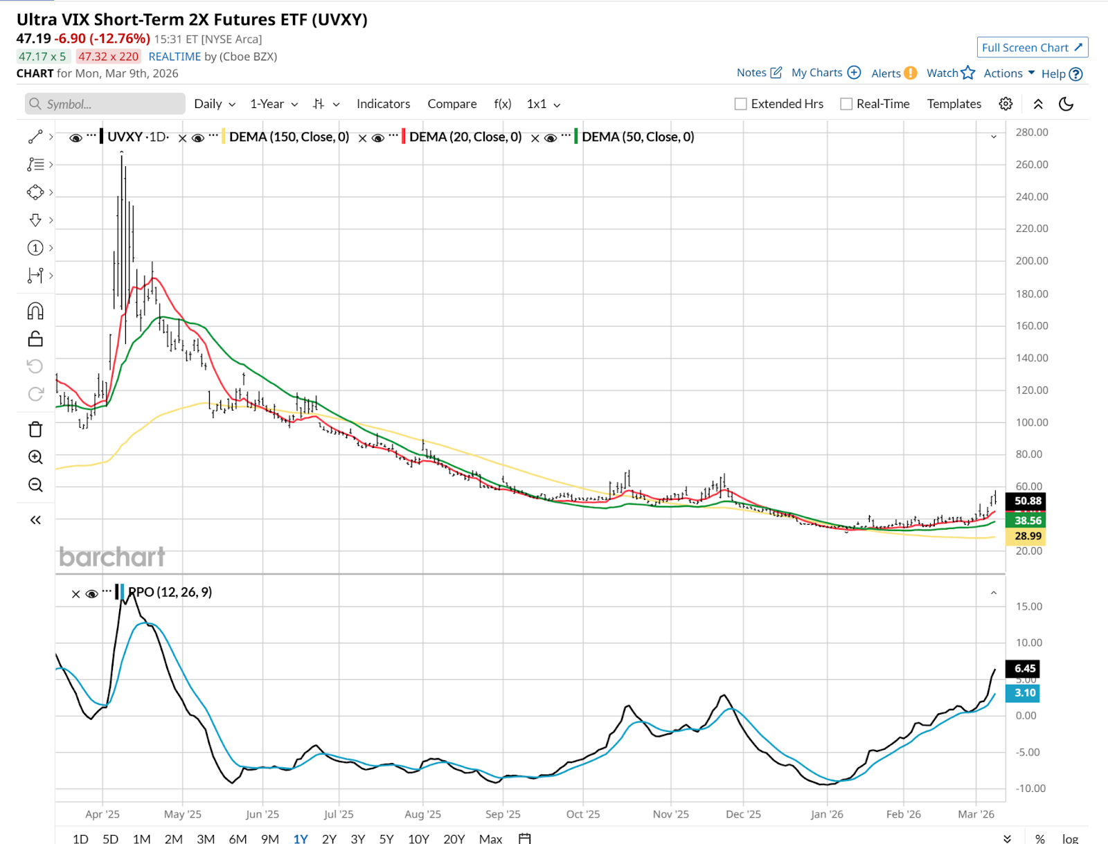 Personally, when I buy it, the clock starts ticking instantly for when I will sell it. If you do not like watching your ETF positions every day, UVXY is a tough one to own. That said, I also see it as a decent, albeit imperfect, surrogate for owning put options — without an expiration date, as options have.