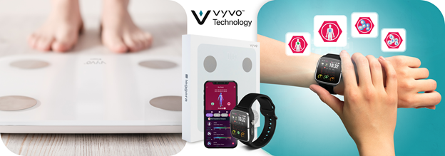 A user can obtain their whole body composition details by undertaking Vyvo BIA using Vyvo LifeWatch 2 and Vyvo's weighing scales, Leggera 2.