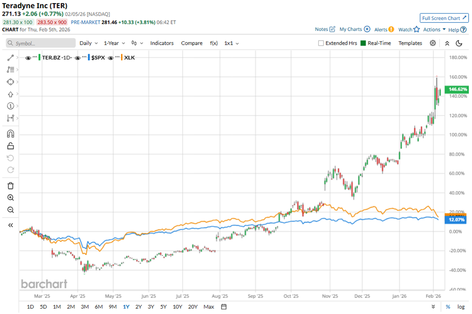 Shares of the North Reading, Massachusetts-based company have surpassed the broader market over the past 52 weeks. TER stock has climbed 140.8% over this time frame, while the broader S&P 500 Index ($SPX) has gained 12.2%. In addition, shares of the company have soared 40.1% on a YTD basis, compared to SPX's marginal decline.