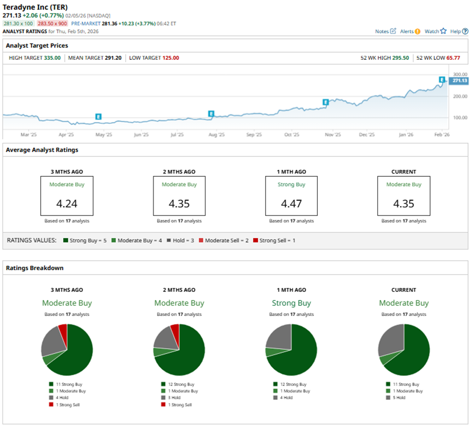 The mean price target of $291.20 represents a 7.4% premium to TER’s current price levels. The Street-high price target of $335 implies a potential upside of 23.6% from the current price levels.