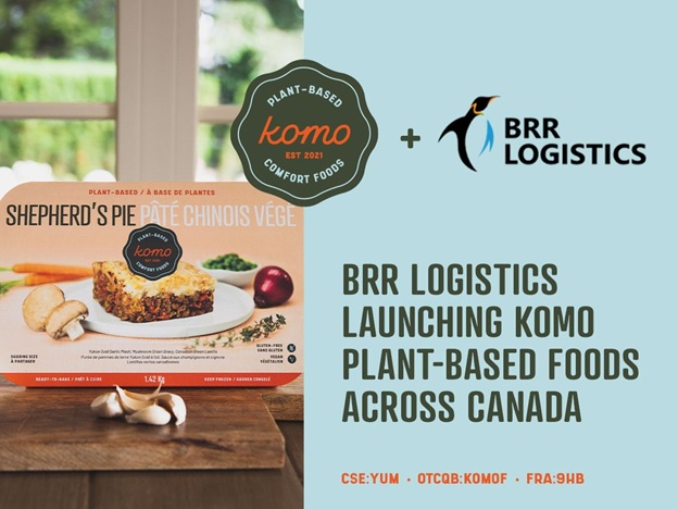 "Myself and the entire team at BRR are really excited as we prepare to launch Komo Comfort Foods to major grocery retail in Canada. While focusing in Ontario and Quebec we will be making sensible and delicious vegan family options available on shelf for 2 in 3 Canadian households! We have watched as the brand exceeded expectations in Western Canada and we are hearing from buyers across Ontario and Quebec who have also noticed Komo and recognized the gap their products fill in the marketplace. There is an inventory position in Ontario now and we expect to see strong demand for Komo Comfort Foods in Q1 2022," says Michael Wakefield, President and CEO, BRR Logistics Limited.