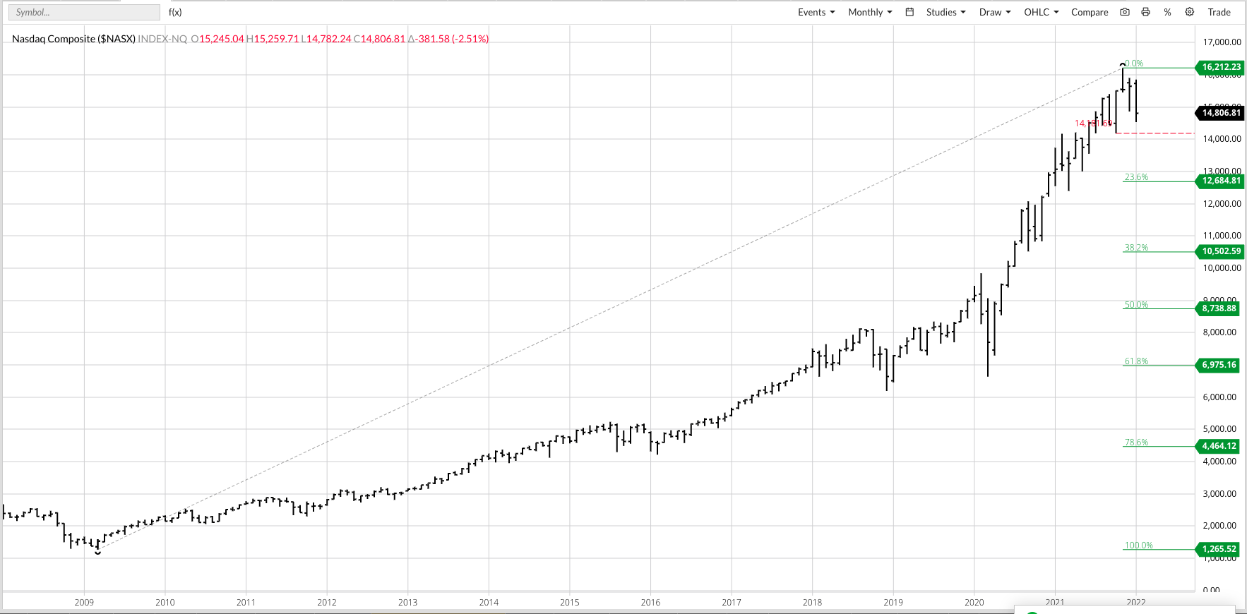 - From a technical point of view, the three major indexes all look to be in position to establish, or have established, long-term tops.