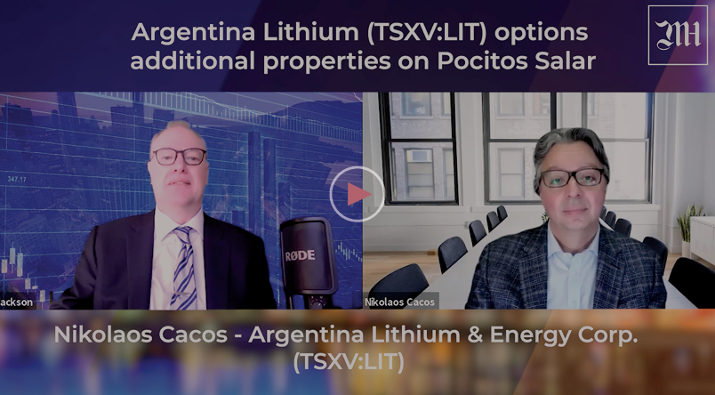 Argentina Lithium & Energy (LIT) is expanding its holdings at the Pocitos Salar, at the heart of Argentina's world-renowned Lithium Triangle. The company's holdings in this salar now total over 26,000 hectares. Argentina Lithium President & CEO Nikolaos Cacos sat down with Dave Jackson to discuss the news.