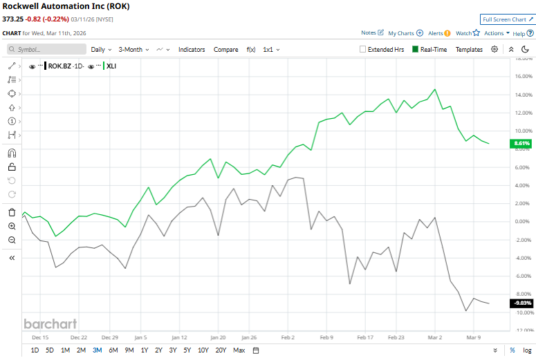 ROK stock touched its 52-week high of $438.72 on Feb. 4 and is currently trading 14.9% below that peak. Meanwhile, the stock has plunged 9.6% over the past three months, outperforming the State Street Industrial Select Sector SPDR Fund’s (XLI) 7.5% surge over the same time frame.
