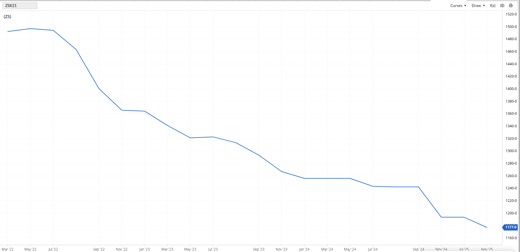 A week ago today (Monday), I was in Atlanta speaking at a US Soybean Export Council (USSEC) meeting with the honored guests a contingent of dignitaries and industry leaders from Nigeria. My part of the program was simple: Talk about the US soy complex supply and demand situation. I showed them my slides of US available stocks of soybeans continuing to tighten (something I will update again when January ends), with my end of December calculation coming in at 0.3% (as compared to USDA’s guesses equating to ending stocks-to-use of 8%). My message was as it always is: We can read the story of real supply and demand by simply looking at futures spreads, and that story is bullish as far out as one wants to look.Â