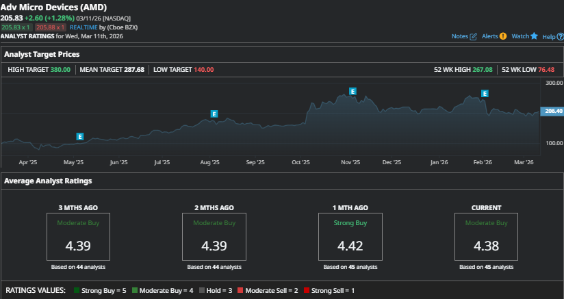 But those favorable factors or a bullish analyst community which maintains a mean price target of $287.68 and 40% above AMD stock’s prices in Wednesday’s session isn’t a reason to buy.