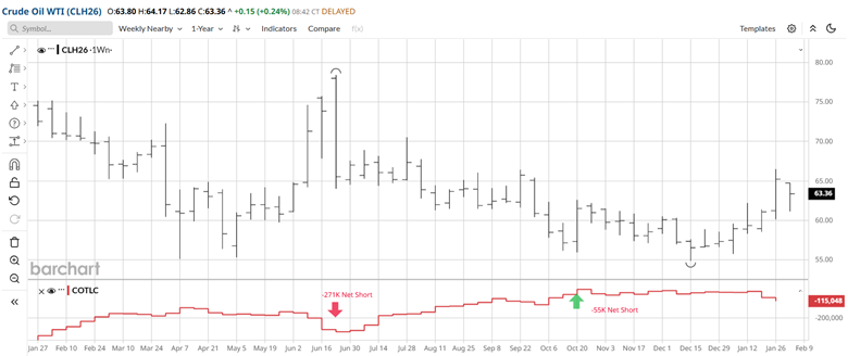 Refiners have been accumulating crude oil in a market where falling prices, a projected global surplus, and lower gasoline prices are setting the stage for a demand-driven spring and summer recovery, even as geopolitical risks and regional refinery closures add volatility. Fundamentally, cheaper crude, rising consumer disposable income, and reliable summer driving demand support higher prices from current levels. Technically, the daily chart has already flipped into an uptrend after reclaiming and turning up the 50-day moving average, aligning with a historically reliable December seasonal low that typically transitions into a spring advance. That seasonal signal is further confirmed by the COT report, where commercial traders are the least bearish in a year and actively covering shorts as refiners accumulate at lower prices. For traders, the convergence of seasonality, improving daily trend structure, supportive fundamentals, and bullish commercial positioning highlights a clear opportunity window—provided risk is managed, and confirmation remains intact.