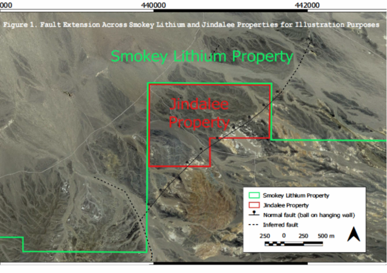 The Smokey Lithium property is located 35 km west of Tonopah, Nevada within the Walker Lane trans tensional corridor on the western margin of the Basin and Range province. The property's geology consists of Miocene - Pliocene tuff deposits, claystones, and siliciclastic beds (Esmeralda Formation) with overlying younger alluvium deposits and desert pavement formation. The claystone, which can carry high lithium concentrations, is observed as highly weathered light grey to tan mounds of unconsolidated clay from 0.10 - 1.50 meters thick. The flat lying nature of the claystones, together with the frequent occurrence of transported cover requires drilling to fully validate and assess Smokey Lithium's potential as indicated by surface sampling.