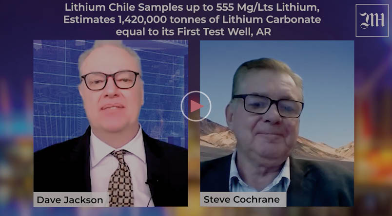 Lithium Chile (LITH) has reported an initial lithium resource statement for its first test well in the Arizaro de Salar project in Argentina. The company is planning a follow up phase 2 drilling program consisting of three exploration holes aimed at expanding the lithium resource and improving the grade on the Arizaro property. Steve Cochrane, President and CEO of Lithium Chile sat down with Dave Jackson to discuss the estimate.