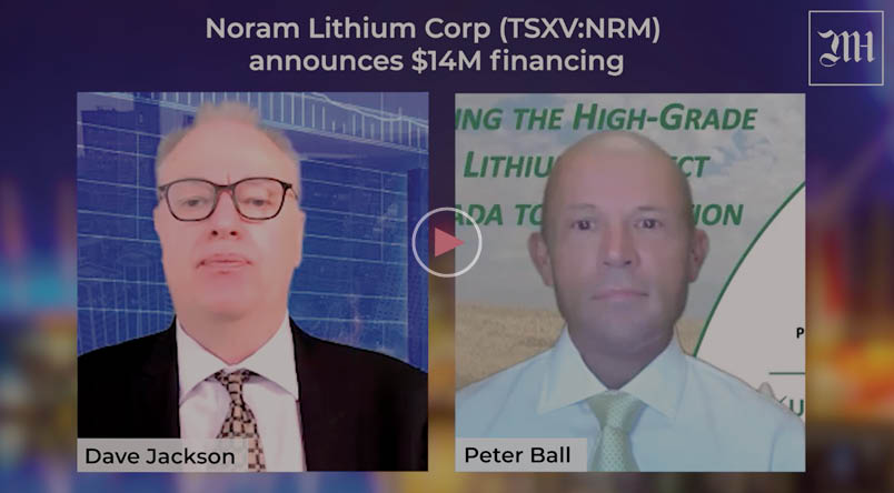 Noram Lithium (NRM) announces a royalty sale and equity investment with Lithium Royalty and the Waratah Electrification and Decarbonization AIE LP . The agreement is for the sale of a 1.0 per cent GOR over Noram's Zeus sedimentary lithium claims in Clayton Valley, Nevada for US$5M and a concurrent $9M private placement. Proceeds from the investment will be used to assist in accelerating the advancement of the Zeus Lithium Project. Mr. Peter A. Ball, President and COO sat down with Dave Jackson to discuss the financing.