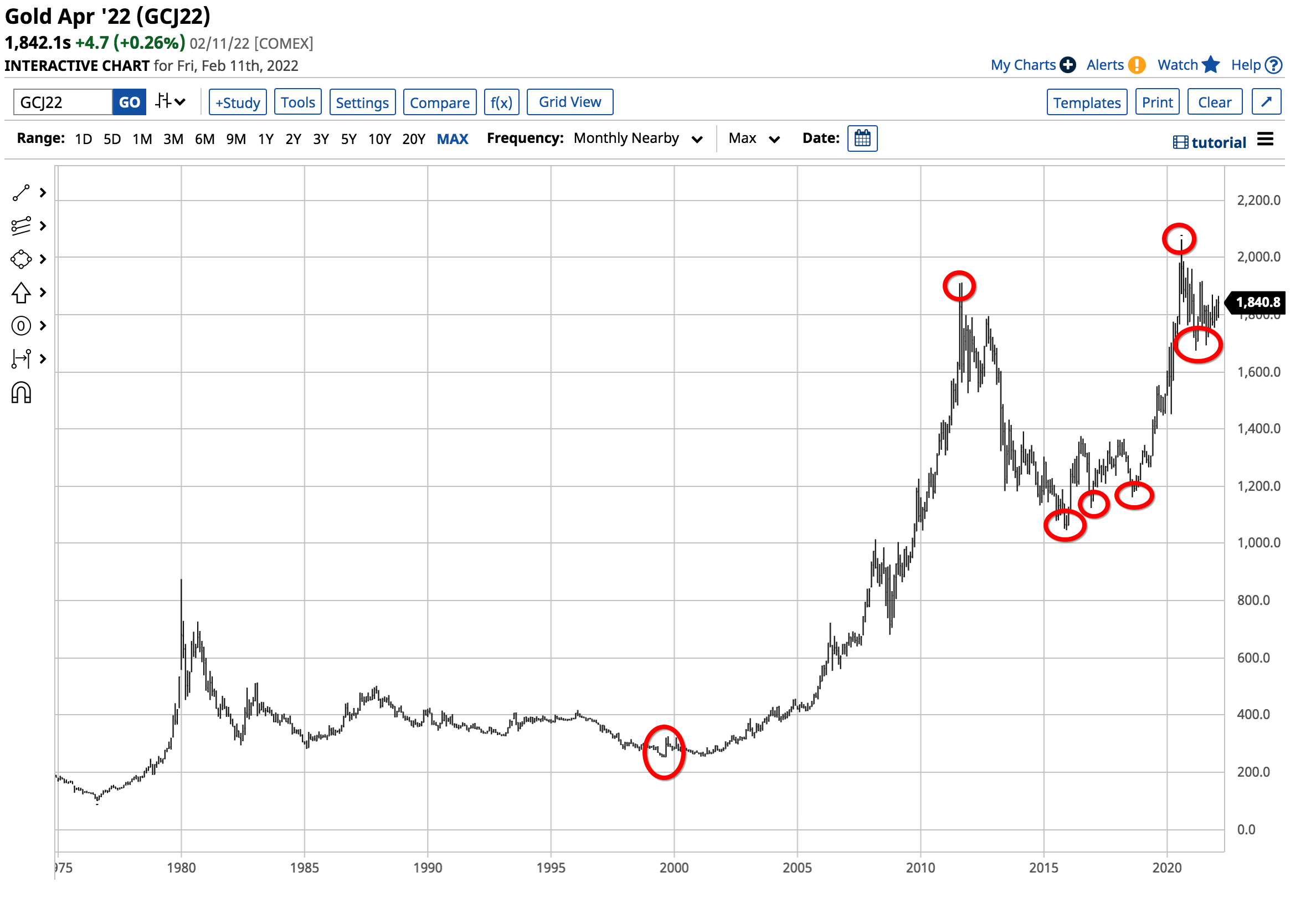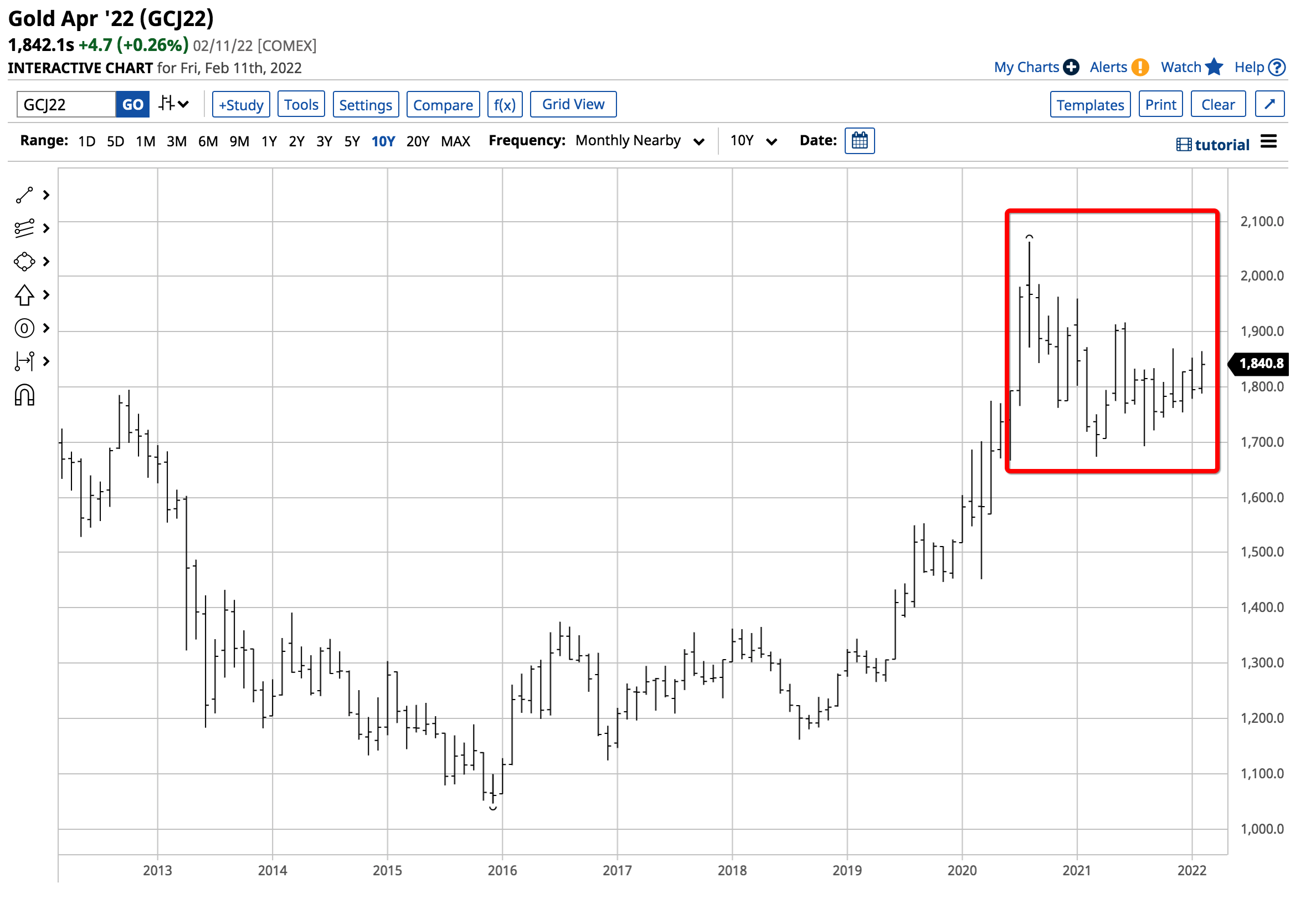Negative interest rates for as far as the eye can see feed inflation and is not bearish for gold, an inflation barometer. In August 2020, gold signaled that central bank liquidity and government stimulus would lead to inflation. In 2022, the yellow metal could move higher, signaling a continuation of the economic condition as central banks have yet to do enough to stem the price pressures.Â