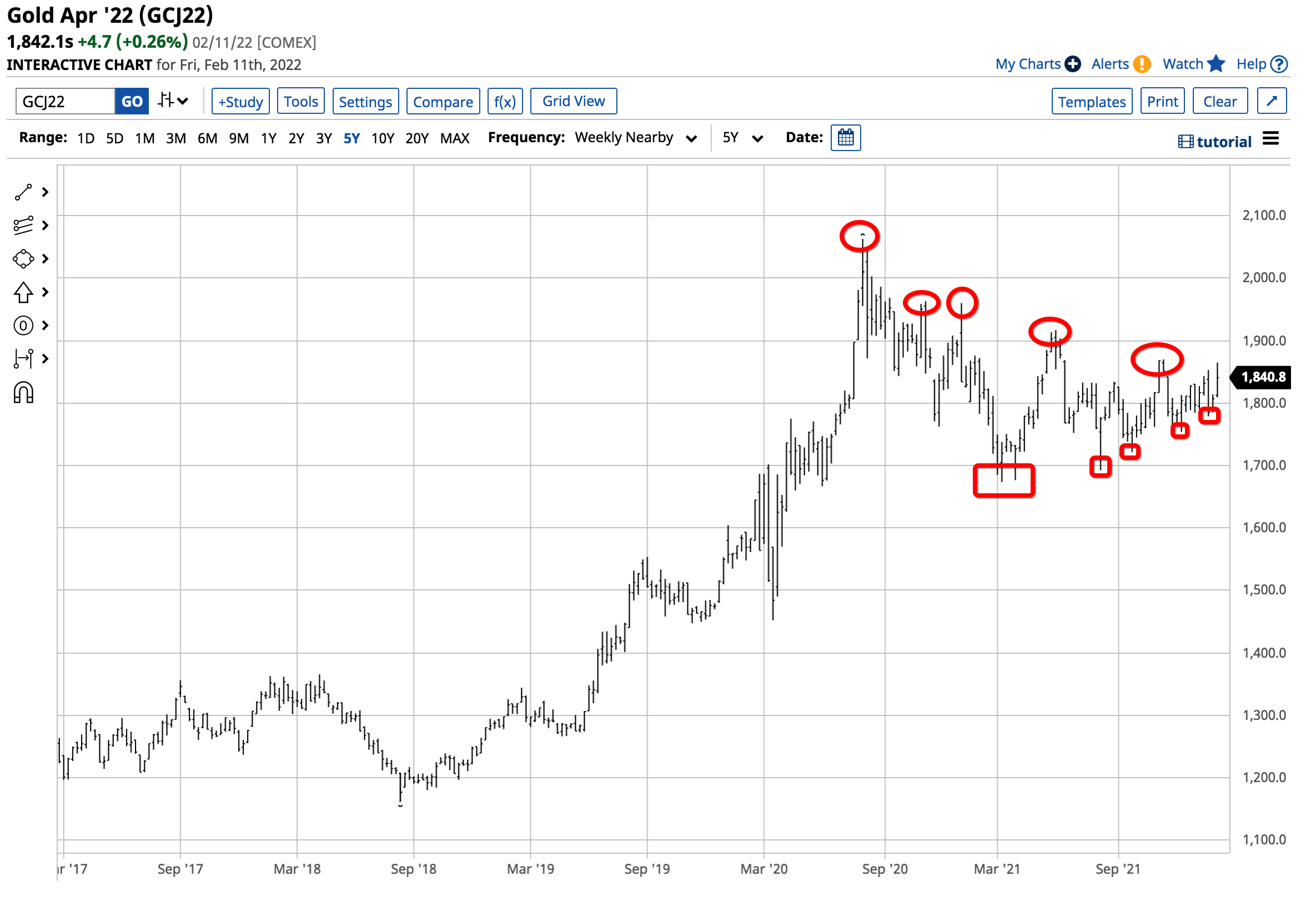 As of the end of last week, the technical resistance levels are at $1869.70 and $1916.60. Eclipsing those levels could lead to a substantial rally that challenges the August 2020 $2063 high and takes gold to much higher levels. The geopolitical tensions surrounding Ukraine cold trigger buying in the gold market over the coming days and weeks.Â