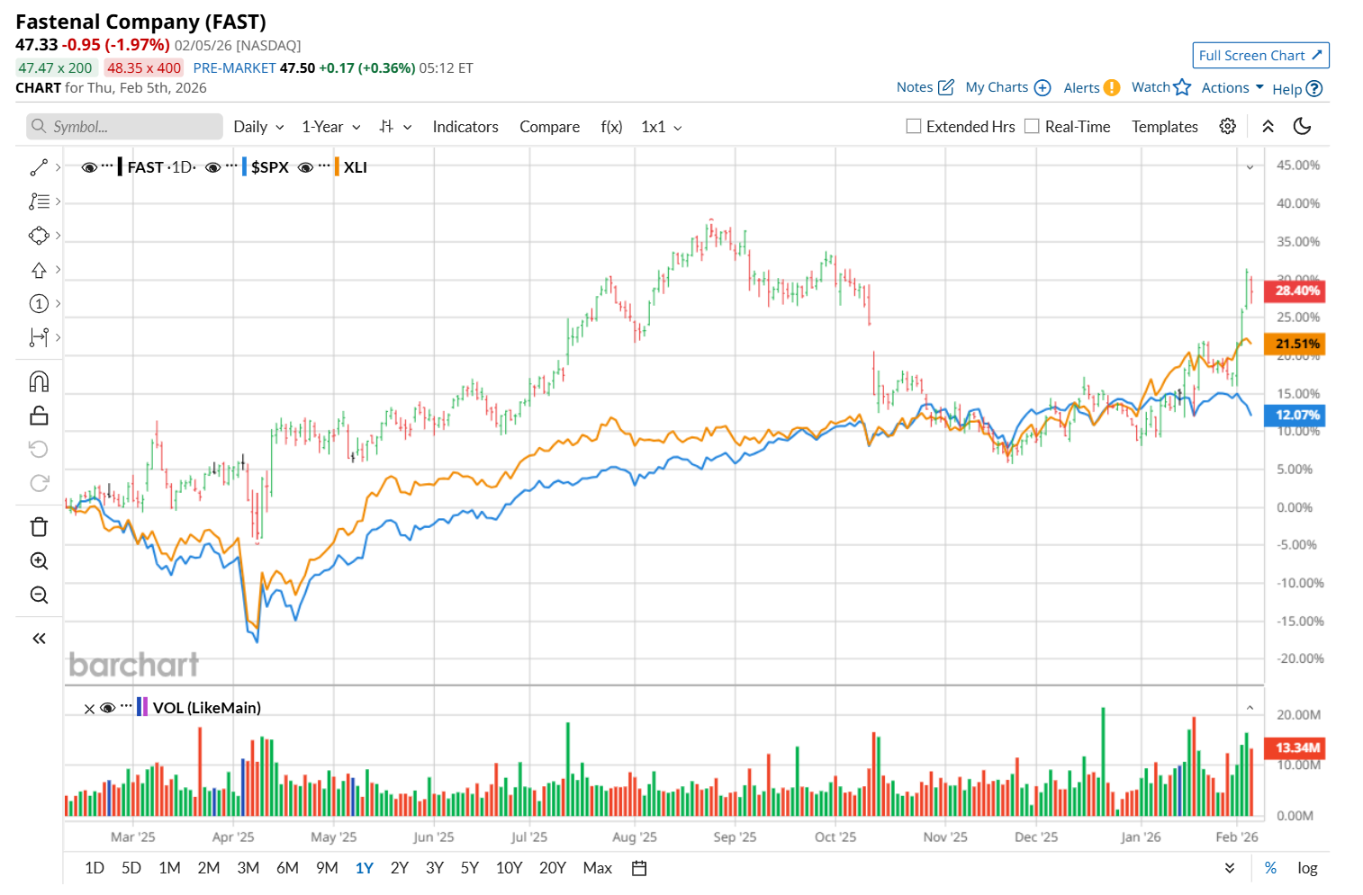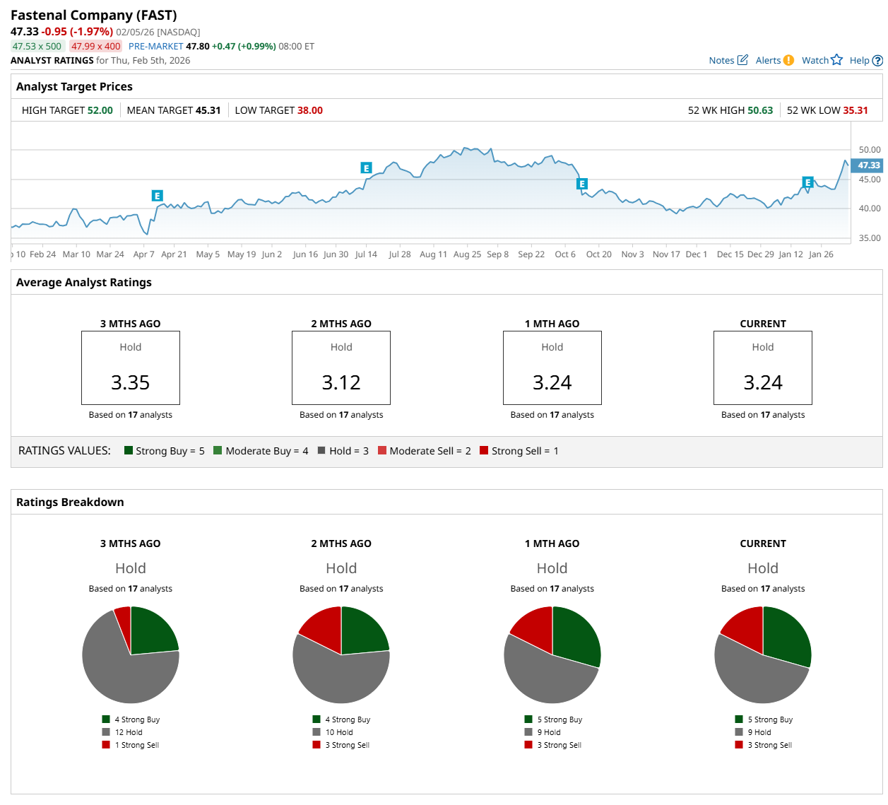 On Jan. 21, Barclays PLC (BCS) maintained an “Equal Weight” rating on FAST but lowered its price target to $43.