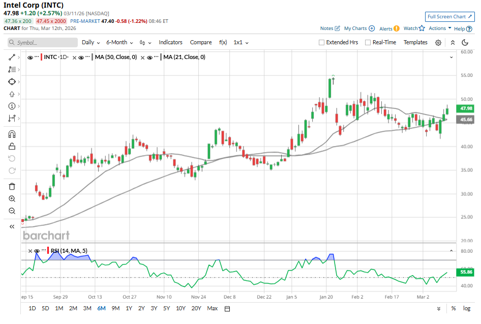 Intel (INTC) stock rallied significantly in 2025, rising about 84%. Moreover, the momentum in INTC stock has sustained in 2026. Even though Intel stock pulled back a bit following weaker-than-expected Q1 projections, it is still up about 25% year-to-date.
