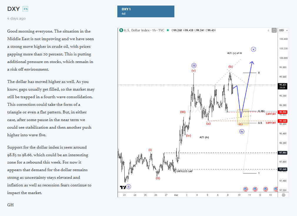 We are experiencing a strong rally from US Dollar – and that is not surprising! We have been alert on DXY strength, and have been updating our members consistently on projected waves – which were in tune with the market. Let’s see what we had to say about DXY 4 days ago: