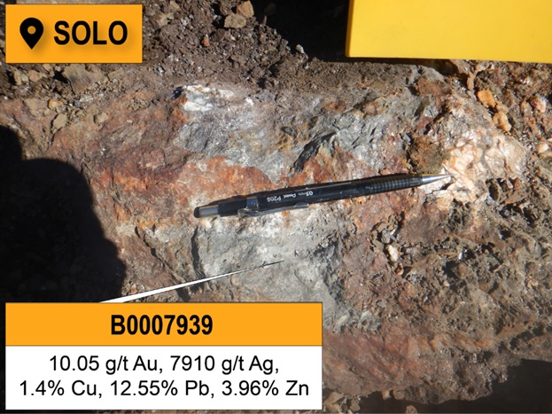 B0007939: 10.05 g/t Au, 7,910 g/t Ag, 1.4% Cu, 12.55% Pb, 3.96% Zn