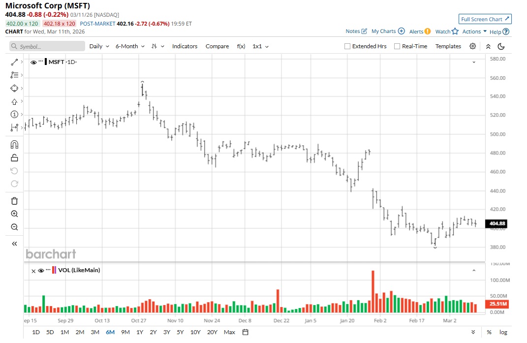 For the second quarter of fiscal 2026, Microsoft reported 17% year-over-year (YOY) growth in revenue to $81.3 billion. It’s worth noting that Microsoft Cloud revenue crossed $50 billion during the quarter. While growth has been robust, MSFT stock has declined by 22% in the last six months, making for what appears to be a good buying opportunity as Micorosoft ramps up its AI plans.