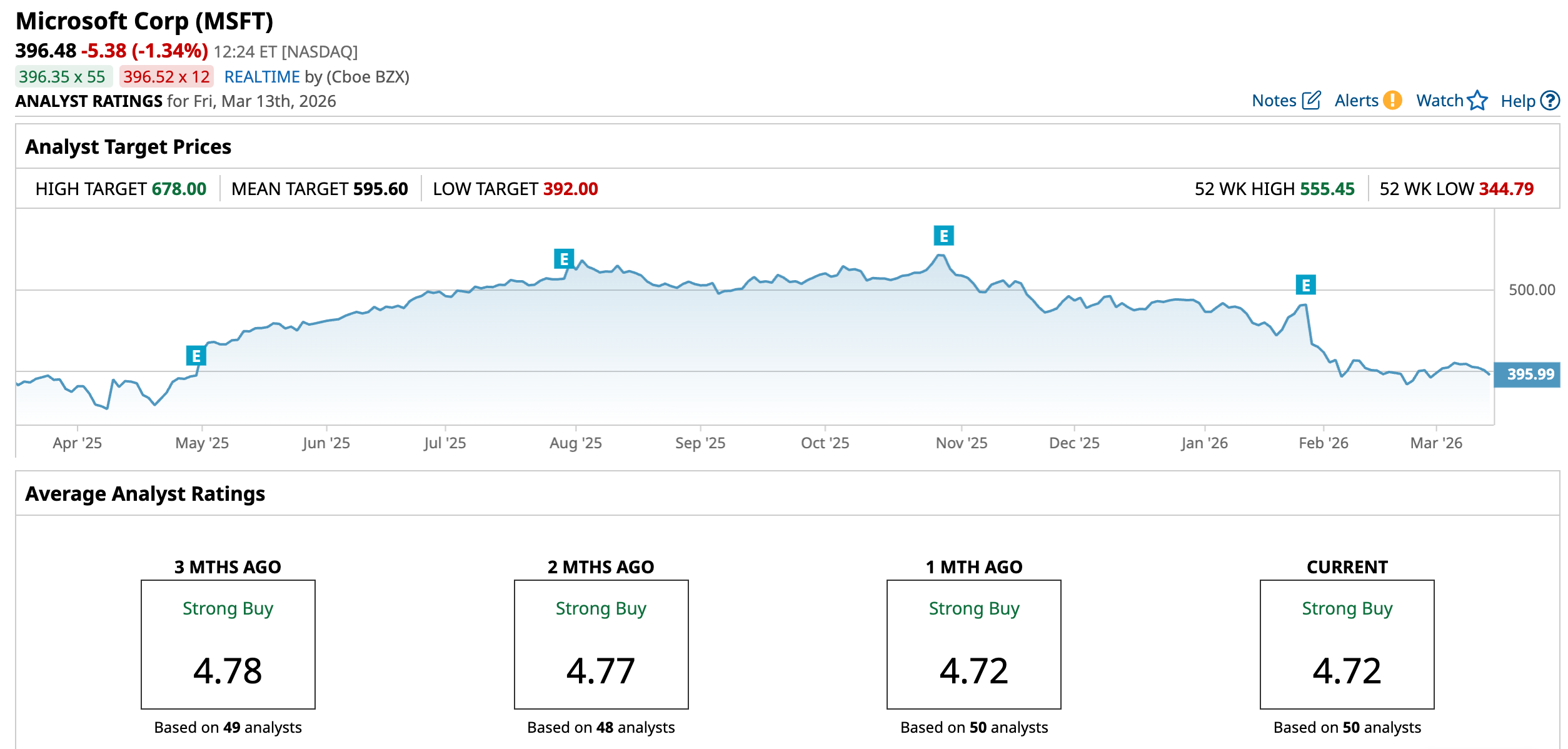 Microsoft has maintained a steady upward trajectory, reflecting its dominance in the AI revolution. The stock reflects a 4.9% gain over the last 52 weeks and is rebounding from a one-year low of $344.79. While the stock faced some volatility with a 22% decline over the last six months due to high capital expenditure concerns, it has shown only a marginal decline over the last month.