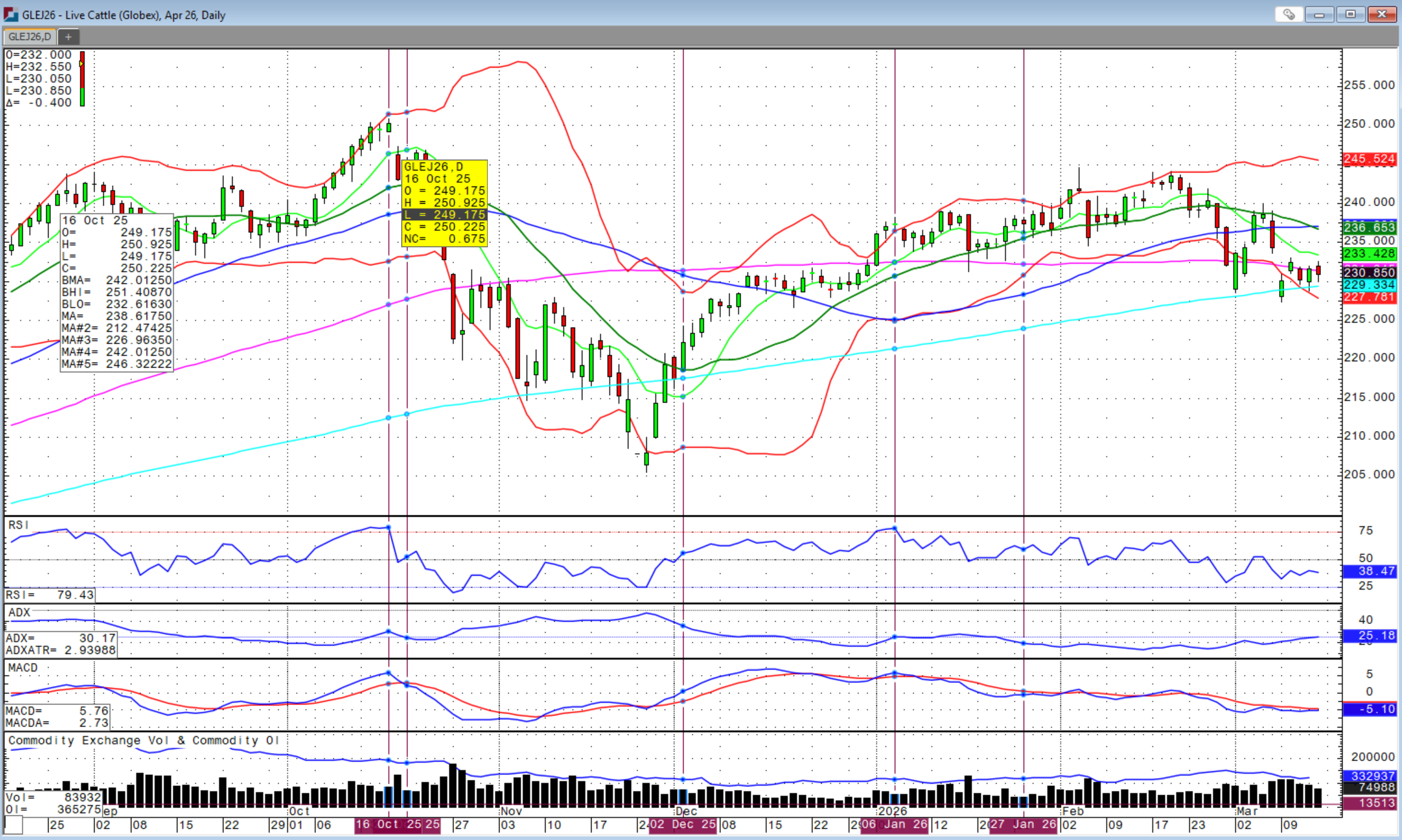 However, it may take the Iran situation to calm down considerably for that to happen. Personally, I feel this conflict could drag out longer than expected as I think it already has for some in the Administration. The equity market has been extremely resilient, especially considering high valuations and so, psychologically, we could soon get to a place where the market internalizes the fact that the conflict will continue, but the worst is over and oil prices will stabilize. That would be welcome news for the cattle complex.