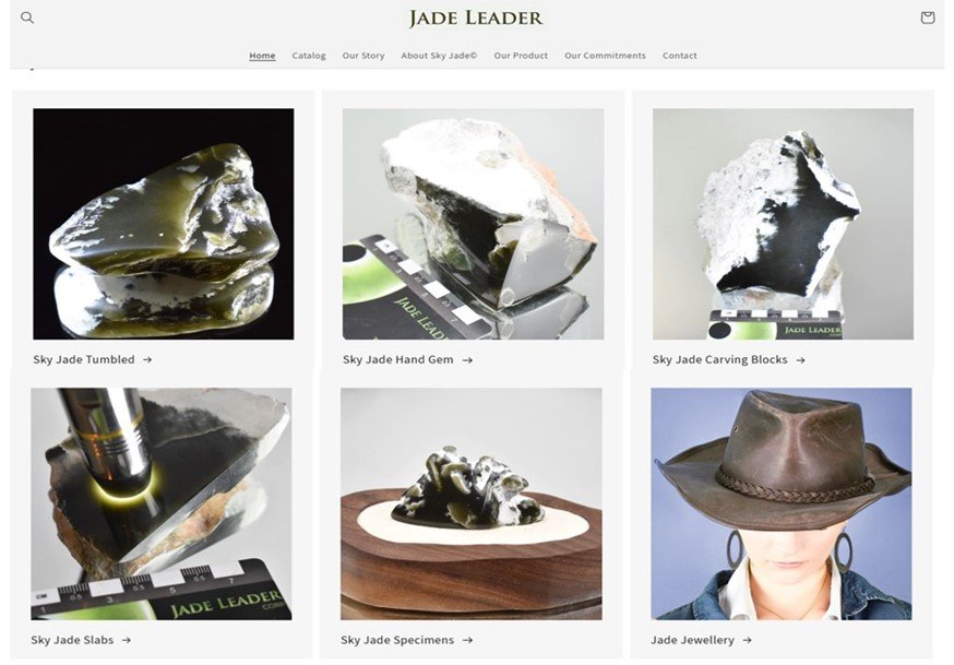 Figure 1: Jadeleader.shop e-commerce site portal and product categories.