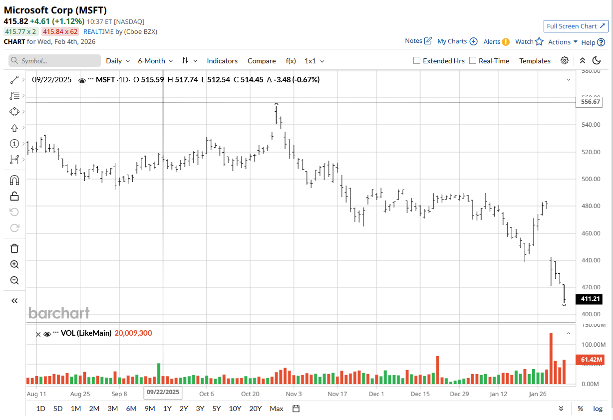 After losing almost 13% in a month, the stock has given back all the gains of the last 12 months. This is particularly shocking for investors who had pinned hopes on MSFT’s investment in OpenAI to bear fruit. There are now significant worries over the company’s AI investments as well as its backlog concentration in OpenAI.
