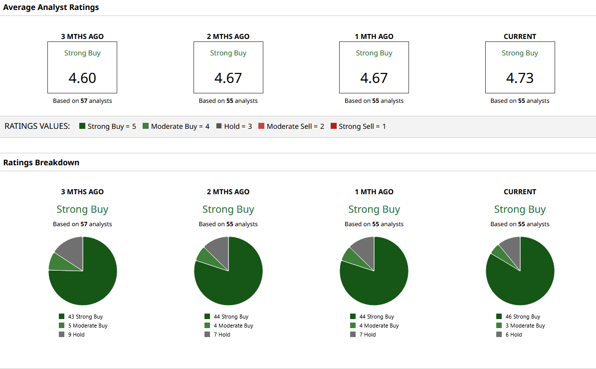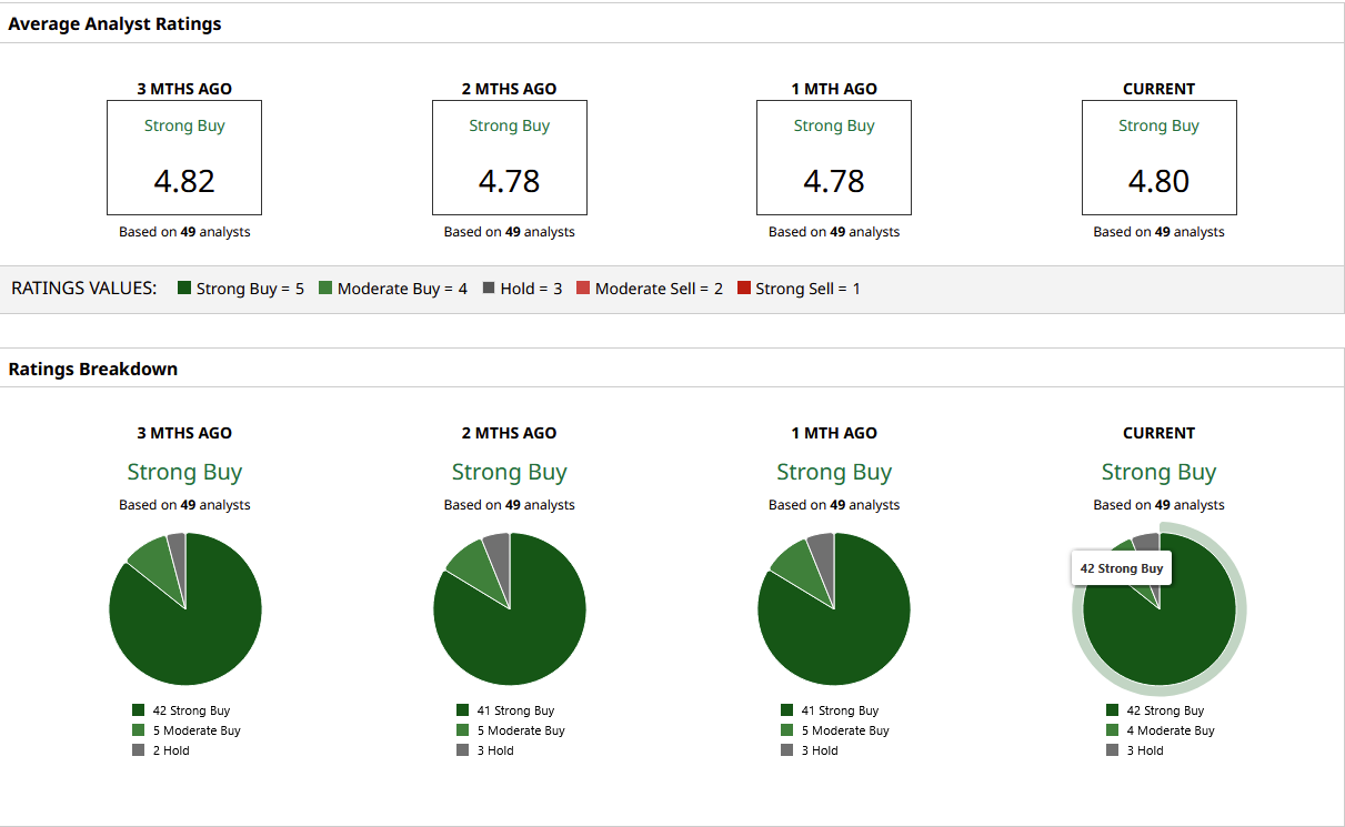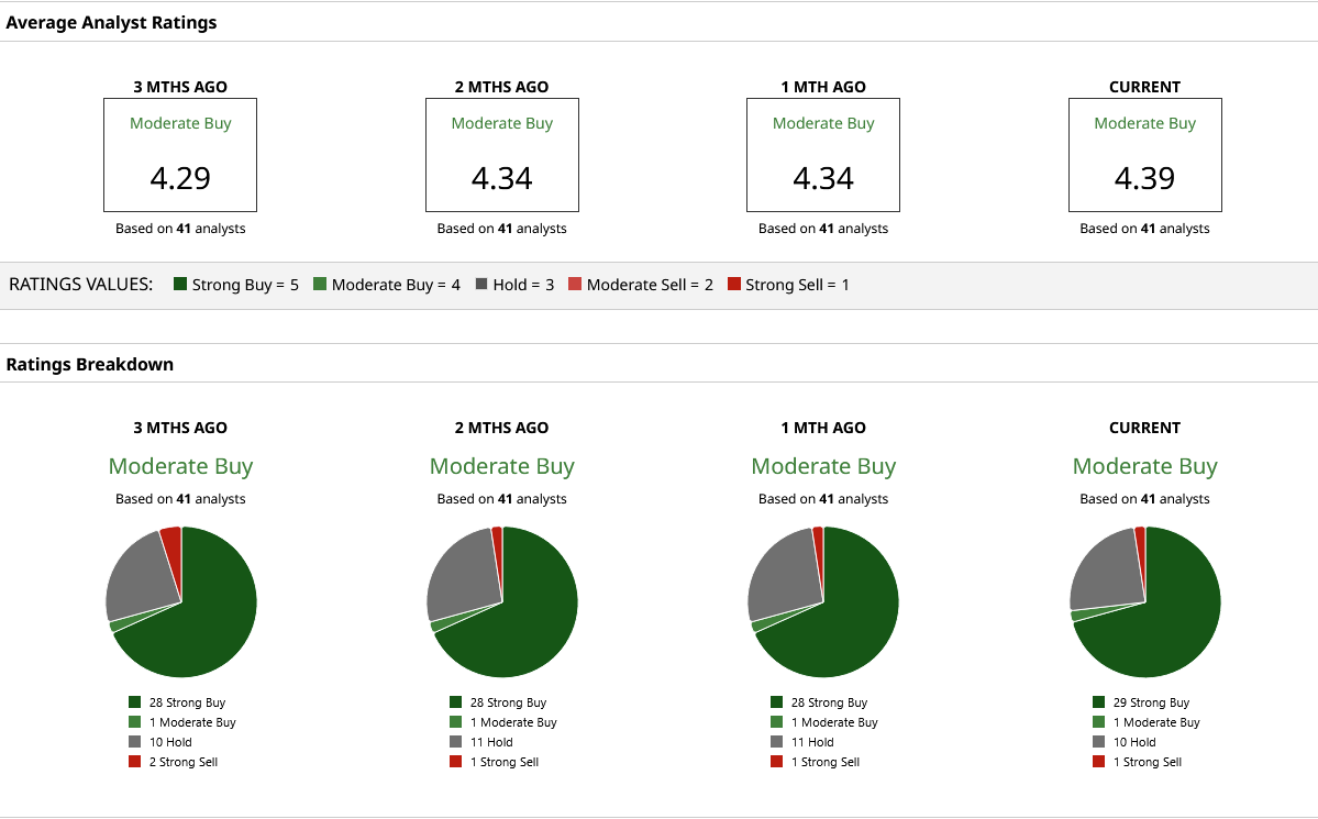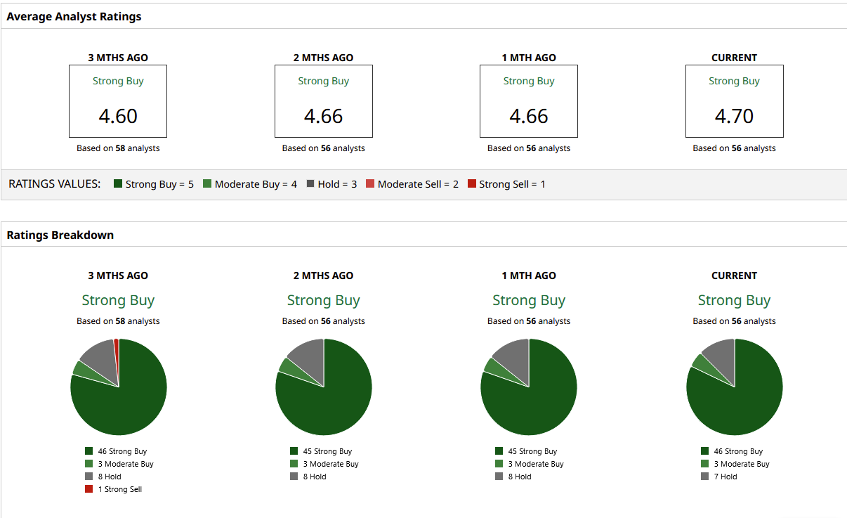 Analysts continue to be bullish on the stock, with 46 “Strong Buy” ratings out of 55 analysts covering the stock. Having said that, it trades quite close to the mean Wall Street price target of $347.68, so investors should carefully review their upside before taking a position in the stock.