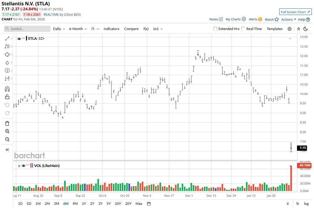 Versus its year-to-date high, Stellantis stock is now down more than 35%.