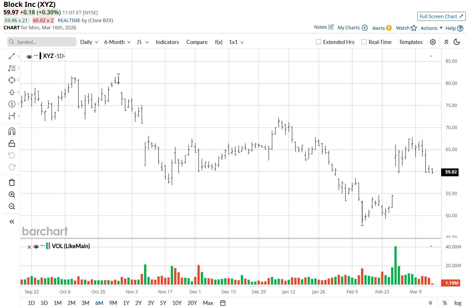 According to Barchart, the consensus rating on XYZ shares sits at “Moderate Buy” currently, with the mean price target of about $84 indicating potential upside of about 40% from here.