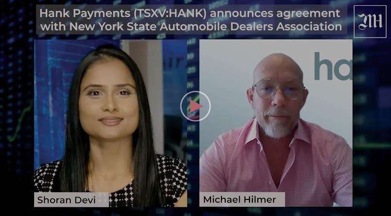 Hank Payments (HANK) has signed an agreement with the New York State Automobile Dealers Association (NYSADA). NYSADA represents close to 1,000 franchised automobile dealers across New York State. Hank is developing marketing, conversion, and implementation plans to activate NYSADA's dealers and drive increased consumer enrollment. Michael Hilmer, CEO of Hank Payments sat down with Shoran Devi to discuss the news.