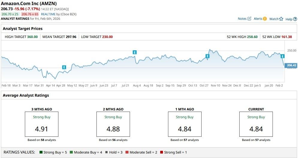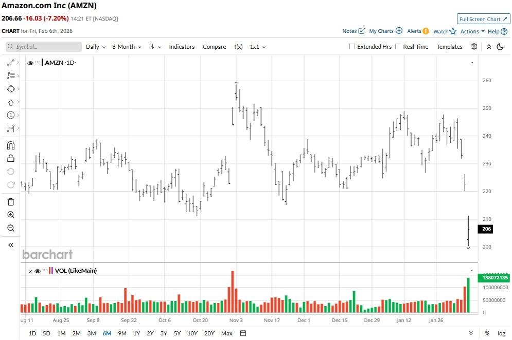 Amazon (AMZN) stock opened nearly 10% down on Feb. 6, after a slight profit miss and daunting capital expenditures (capex) guidance spooked investors, despite an otherwise positive Q4 release.