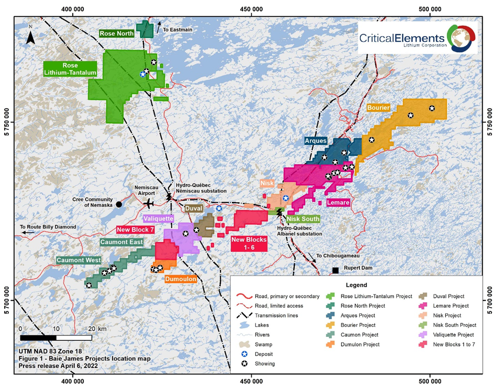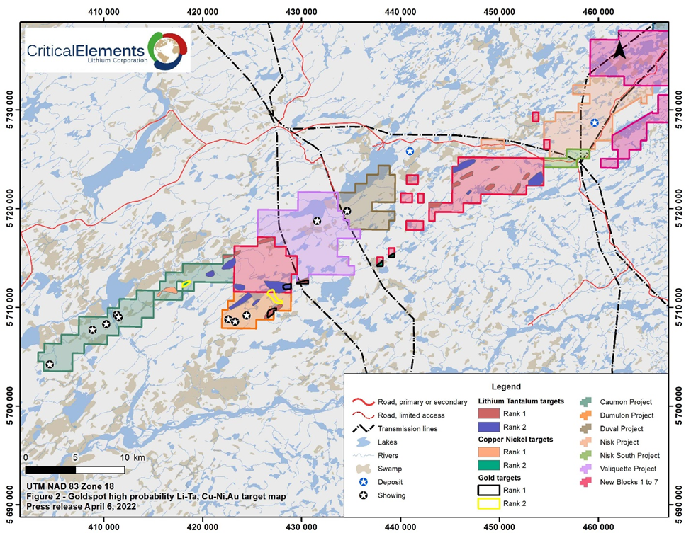 MONTREAL, QC / ACCESSWIRE / April 6, 2022 / Critical Elements Lithium Corporation (TSXV:CRE.VN)(USOTCQX:CRECF)(FSE:F12) ("Critical Elements" or the "Corporation") is pleased to announce an exploration program for 2022.