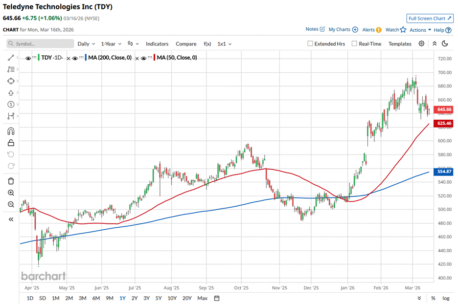 Despite its strength, TDY stock slipped 6.9% from its 52-week high of $693.38, reached on March 04. Yet, the stock is up 27.5% over the past three months, outperforming the S&P 500 Index’s ($SPX) 1.5% decline during the same time frame.
