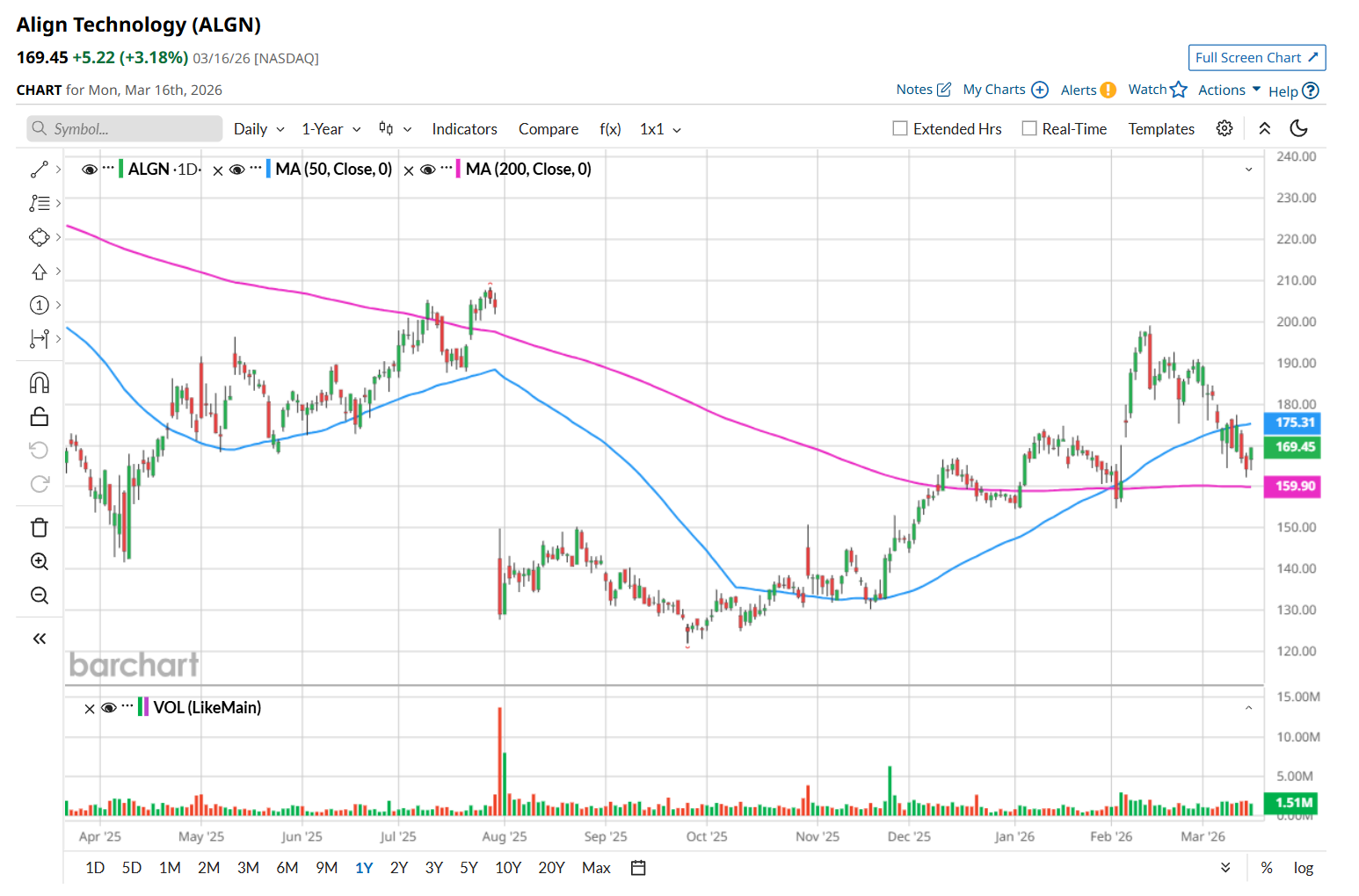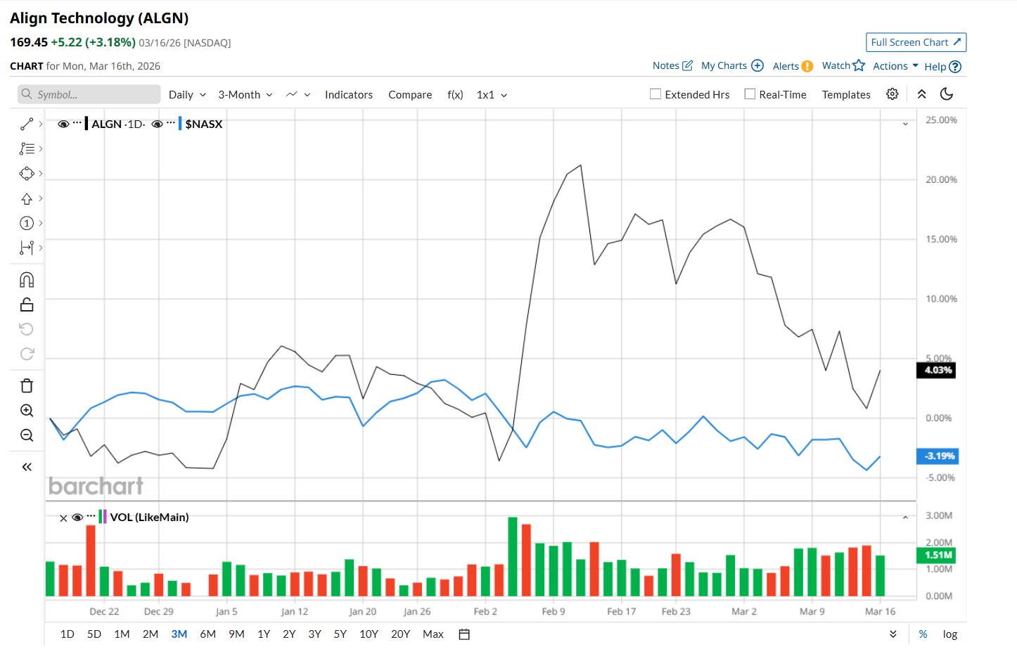 This dental care leader is currently trading 18.7% below its 52-week high of $208.31, reached on Jul. 29, 2025. Shares of ALGN have soared 4% over the past three months, outperforming the Nasdaq Composite’s ($NASX) 3.2% drop during the same time frame.