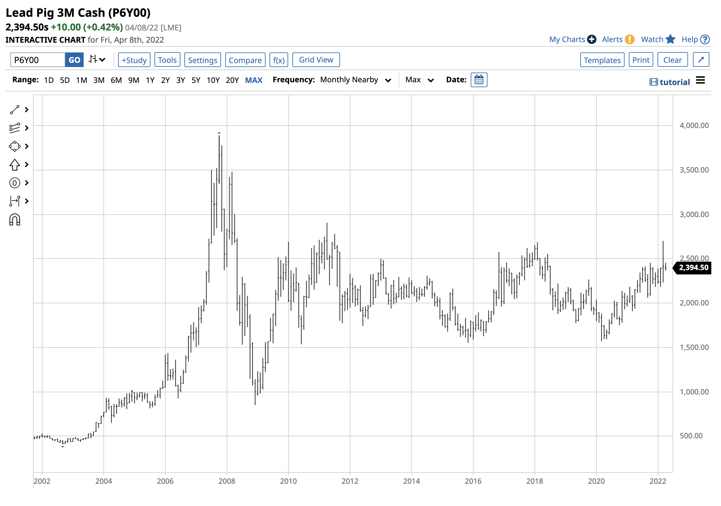 Three-month LME lead forwards were 4.86% higher in Q1 after a 16.22% gain in 2021.Â