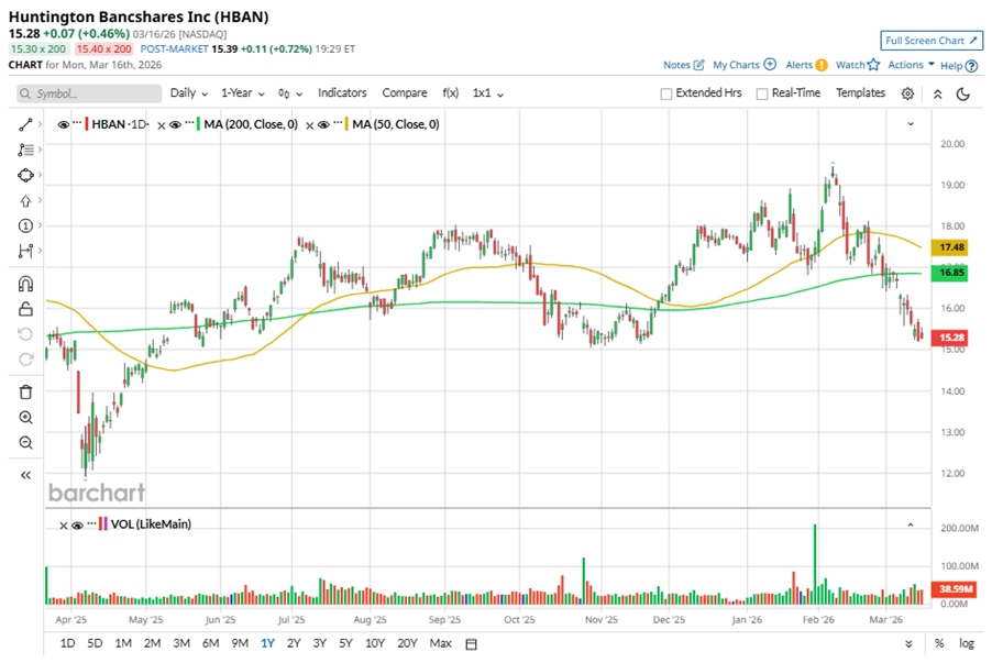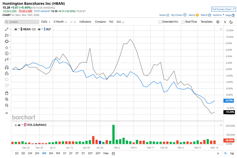 Despite its notable strength, HBAN slipped 21.5% from its 52-week high of $19.46, achieved on Feb. 6. Over the past three months, HBAN stock declined 13.3%, underperforming the State Street Financial Select Sector SPDR ETF’s (XLF) 9.8% losses during the same time frame.