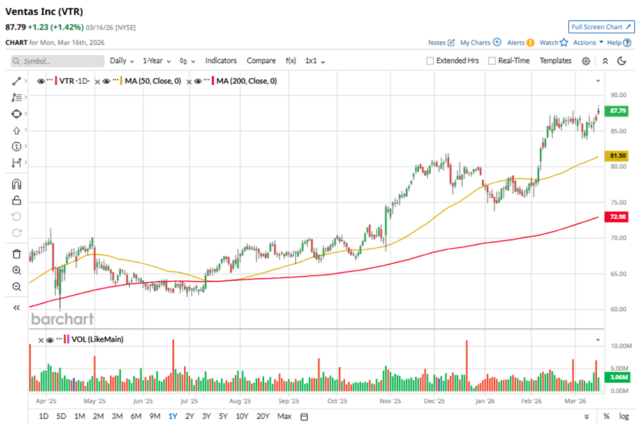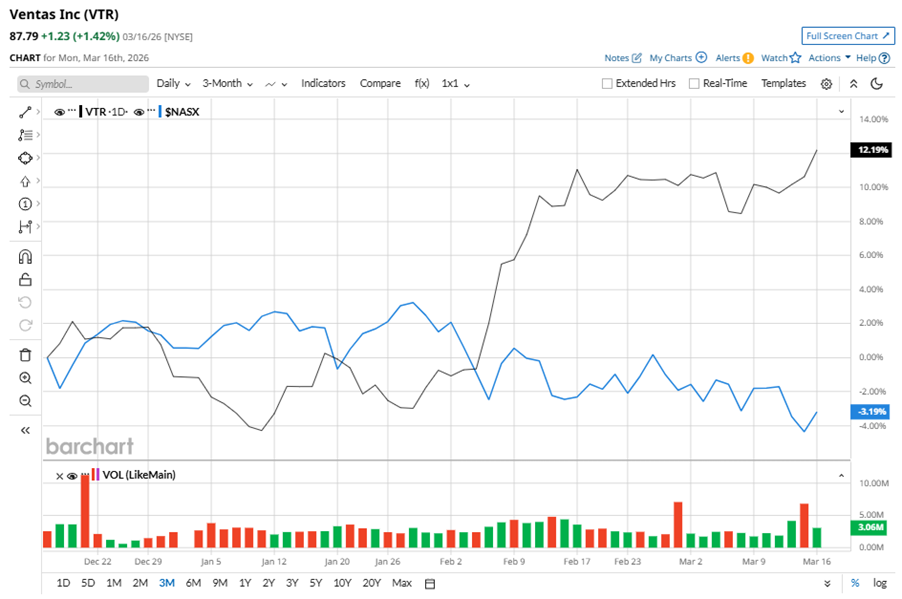 Despite its notable strength, VTR shares touched their 52-week high of $88.23 in the last trading session. Over the past three months, VTR stock has gained 12.2%, outperforming the Nasdaq Composite’s ($NASX) 3.2% losses during the same time frame.