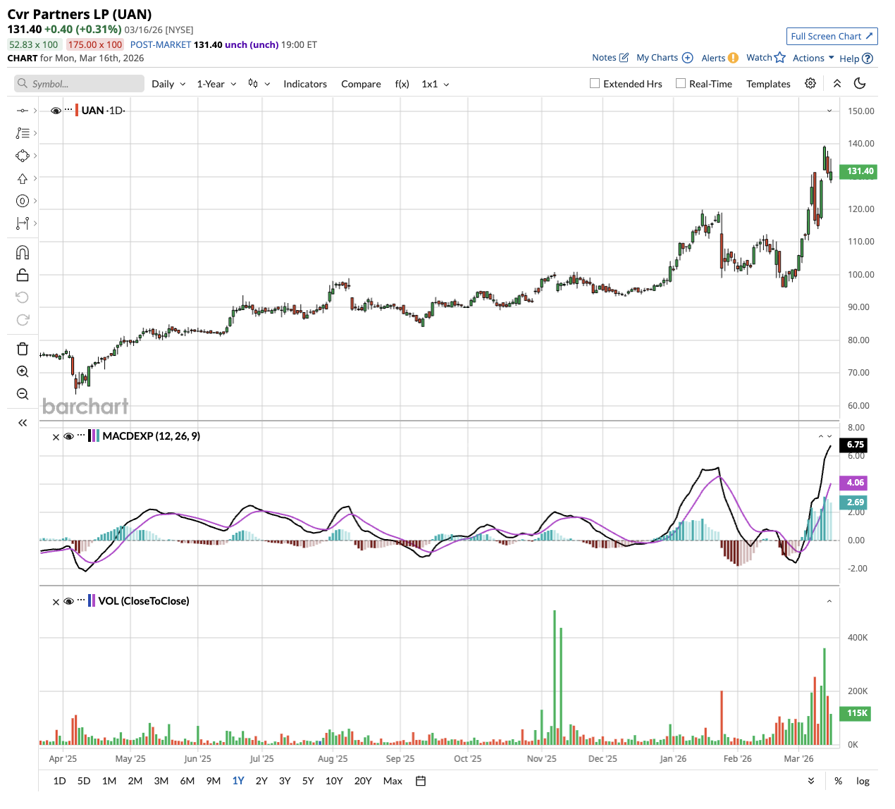 In 2025, CVR reported revenue of $606 million, an increase of 15.4% YoY. It reported an operating margin of $130 million and a free cash flow of almost $100 million. UAN stock is up 30% in 2026 and has surged 75% in the past year.
