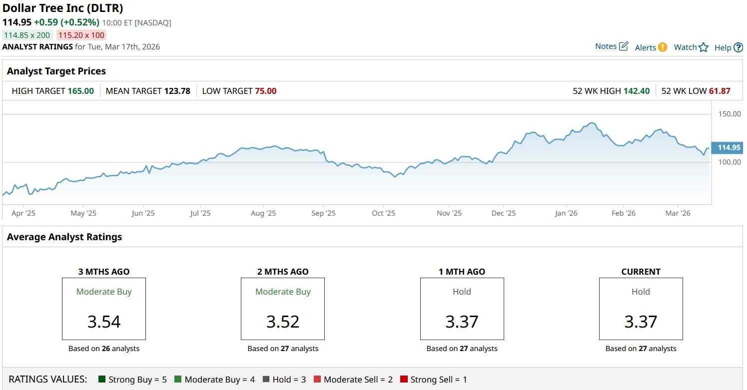 While the consensus rating on DLTR stock remains at a “Hold” only, the price targets go as high as $165, indicating potential upside of more than 45% from here.
