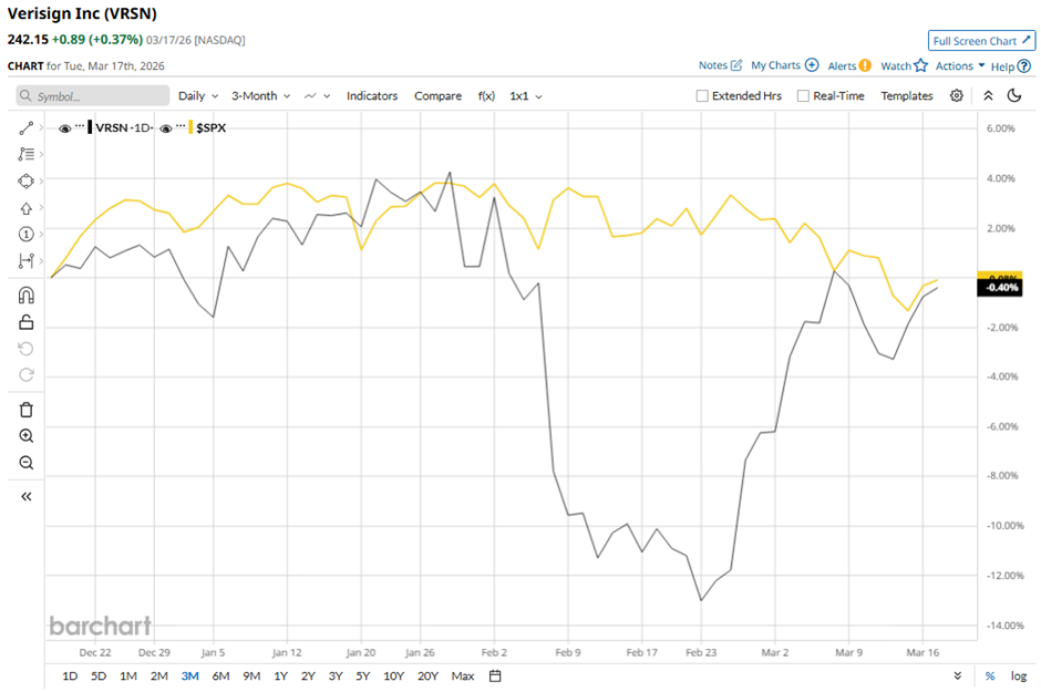 Shares of VeriSign tumbled 7.6% following its Q4 2025 results on Feb. 5, mainly due to a slight earnings miss, with EPS at $2.23 coming in below expectations despite net income rising to $206 million. Additional pressure came from expectations of higher costs and capital expenditure of $55 million to $65 million, driven by AI-related demand, along with uncertainty around pricing and new service launches.